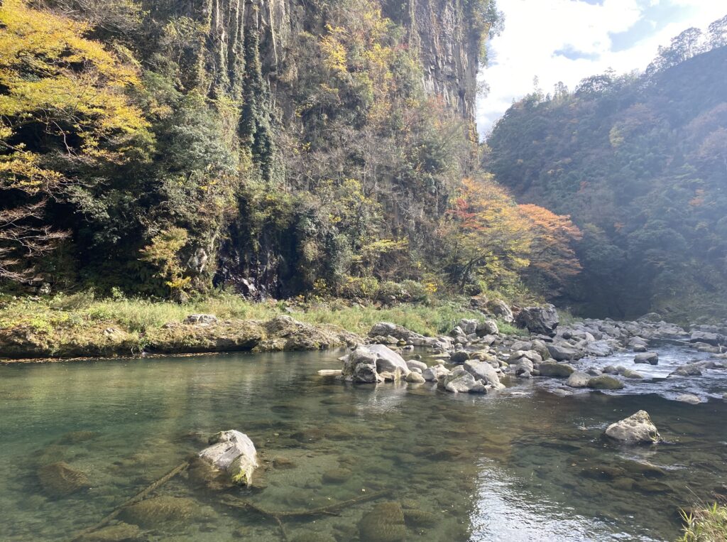 だから断崖の高さは平均80m、最も高い断崖では100mにも達しているという。高千穂峡ではこのような断崖が東西7kmにわたって続いていると言われている。