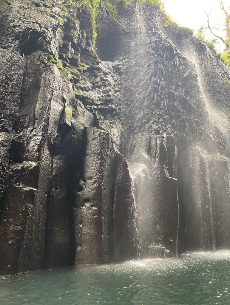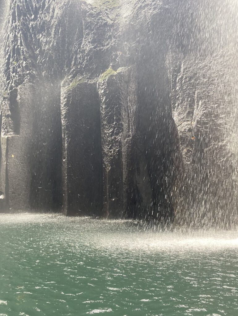 眞名井の滝の下を通過するの楽しい。しかしこの場所が最も混みあうので長居はできない。