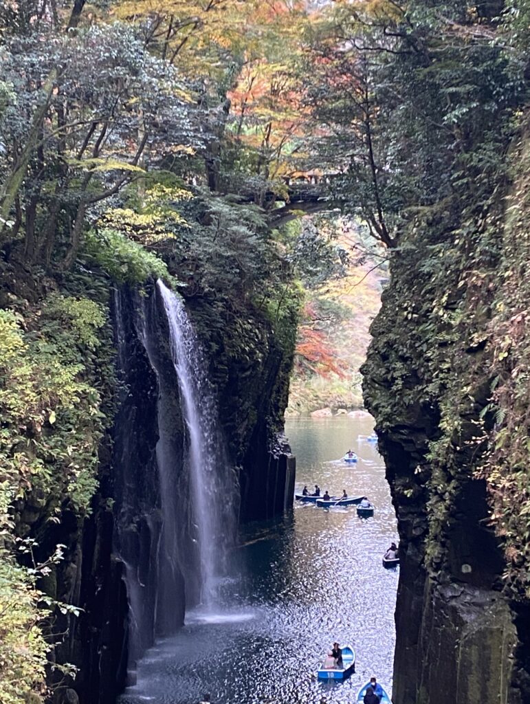 高千穂峡谷は想像以上に狭い渓谷であることを知った。