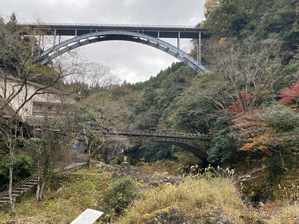 遊歩道の途中に新旧の橋が見える場所がある。新旧の橋とは、神都高千穂大橋神橋のことである。